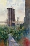 22"x15" original watercolor painting of the Brooklyn Bridge with the Manhattan Bridge peeking out in the distance. A white trim is left for matting and framing. Ships in a tube with insurance. Framing is available for local pickup in Harlem.