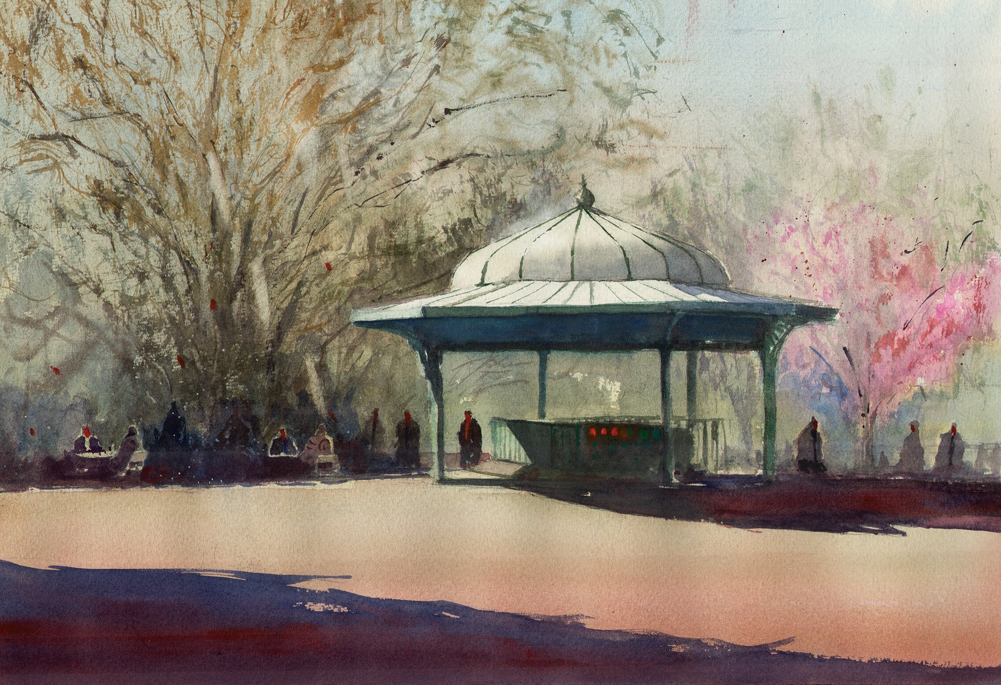 15"x22" original watercolor painting of Union Square station in NYC. Ships in a tube with insurance. Framing is available for local pickup in Harlem.